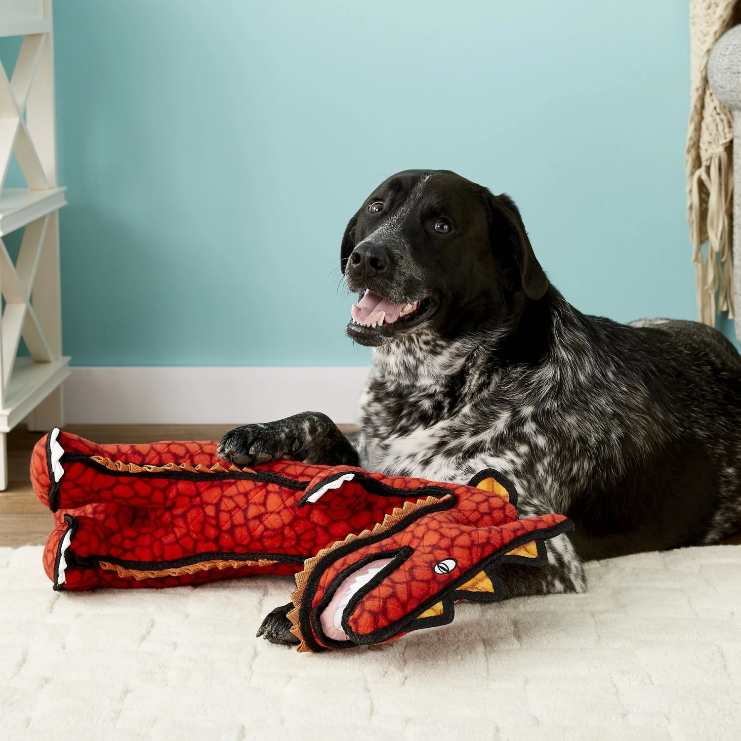Don’t let the name fool you. Tuffy’s Destructosaurus Dino Dog Toy is better at taking abuse than dishing it out. It’s made with three layers of safe, non-toxic fibers, and all three are fused and sewn together to make one ultra “tuff” layer, ensuring this toy is just as durable as it is fun. And because paleontologists believe Destructosaurus was equally at home lounging in the living room or playing at the pool, this Dino toy is made to float!