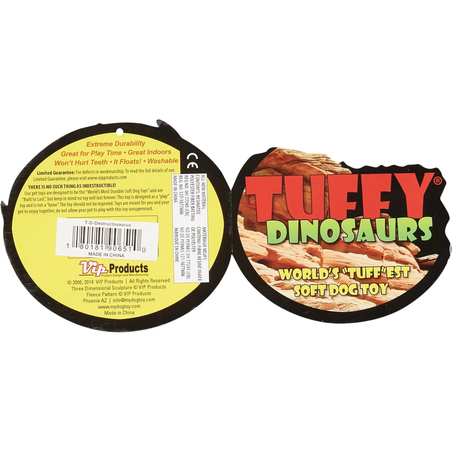The Tuffy’s Series Toys are designed to be play toys and not chew toys. Every dog plays differently and, since not all toys are created equal, it’s always best to keep a close watch on your pup in case things get ruff. Supervised play will help toys last longer and most importantly keep your pal safe. No dog toy is truly indestructible, so always remove the toy from playtime if pieces begin to break off.
