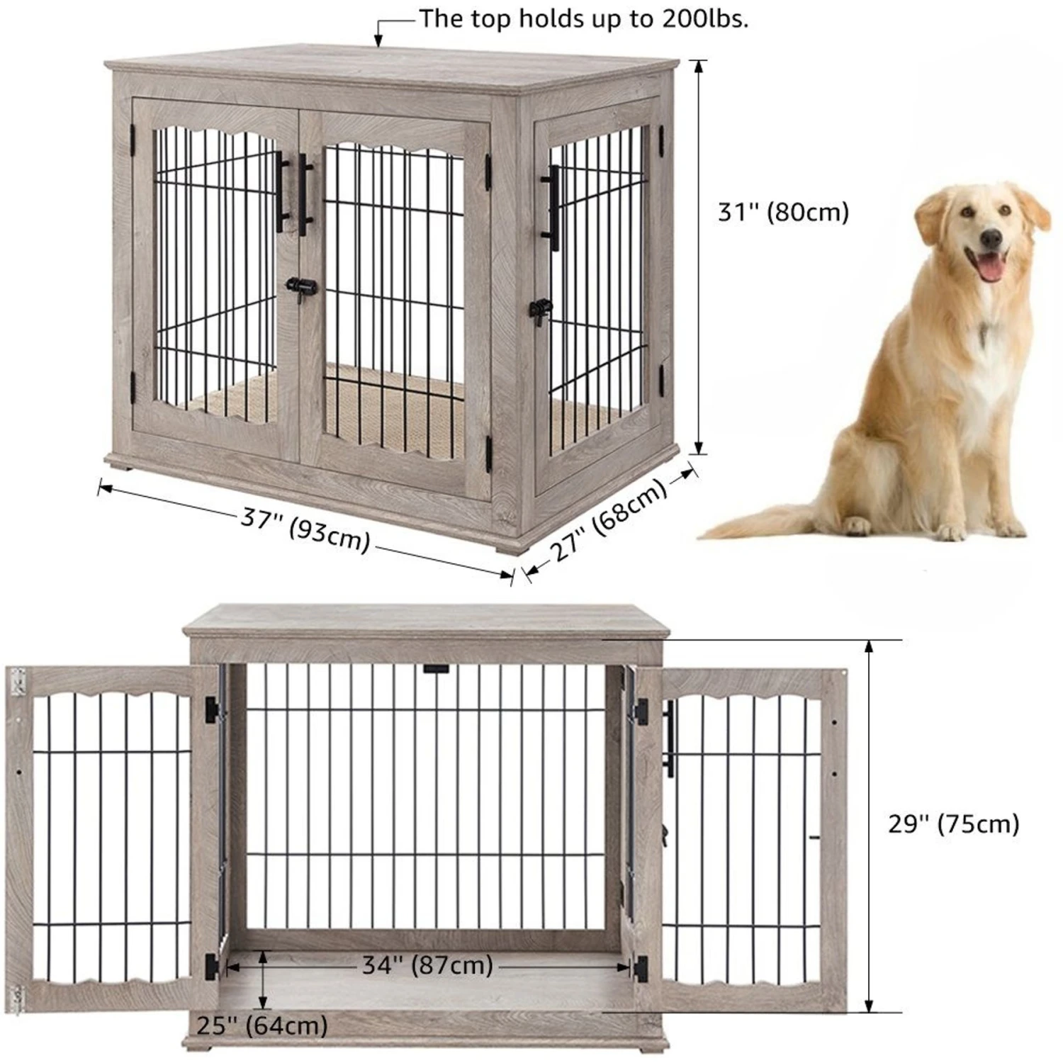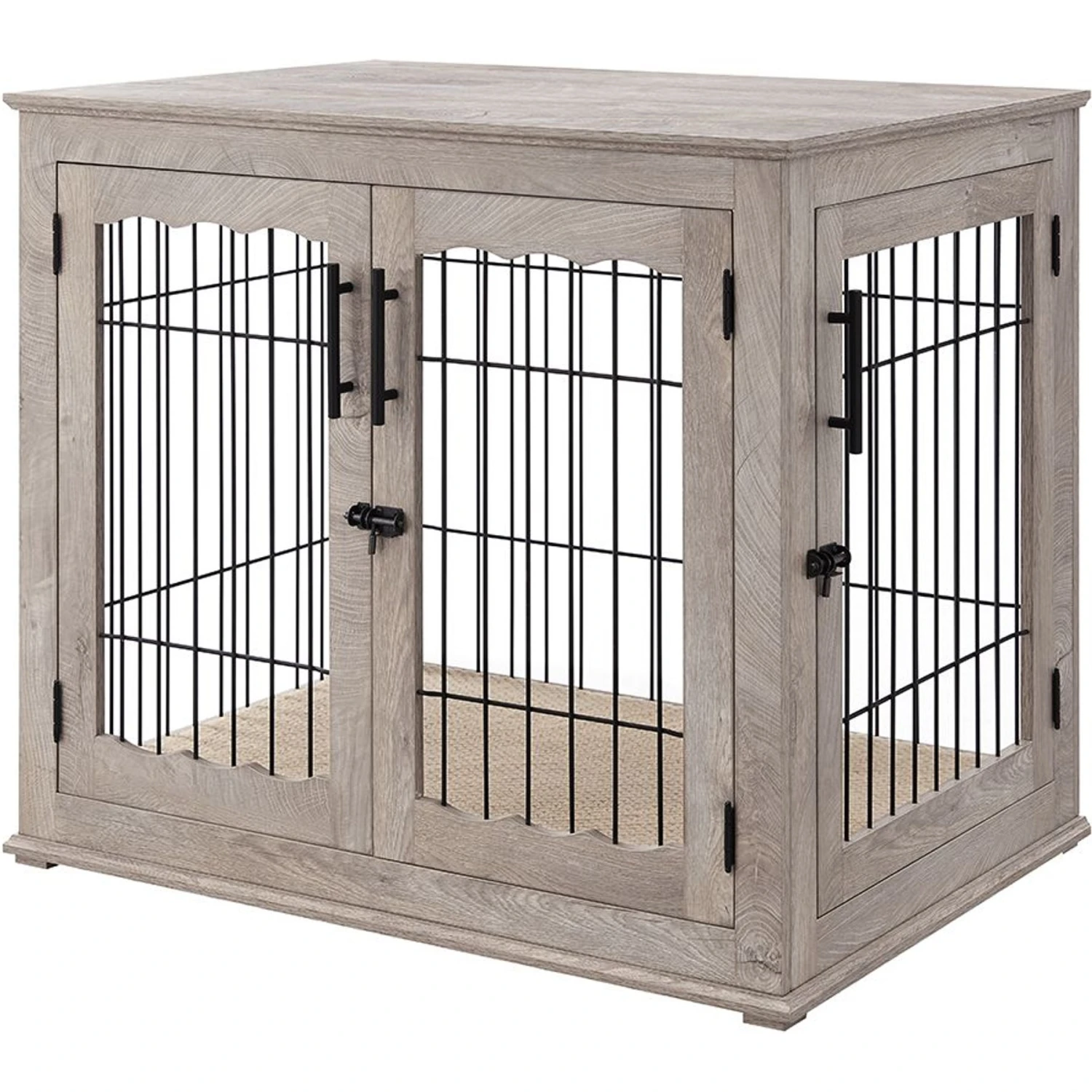 Create the paw-fect place for your pet to snooze with a Unipaws Wooden Wire Furniture End Table Dog Crate. This cozy dog crate doubles as a stylish end table for your home. It features a single door on the side and double doors on the front that lock for easy accessibility and security. The wide top of the crate is a great spot for plants, picture frames, books and more. Your pooch will appreciate the included removable soft bed to curl up on after a day of tail-wagging fun.