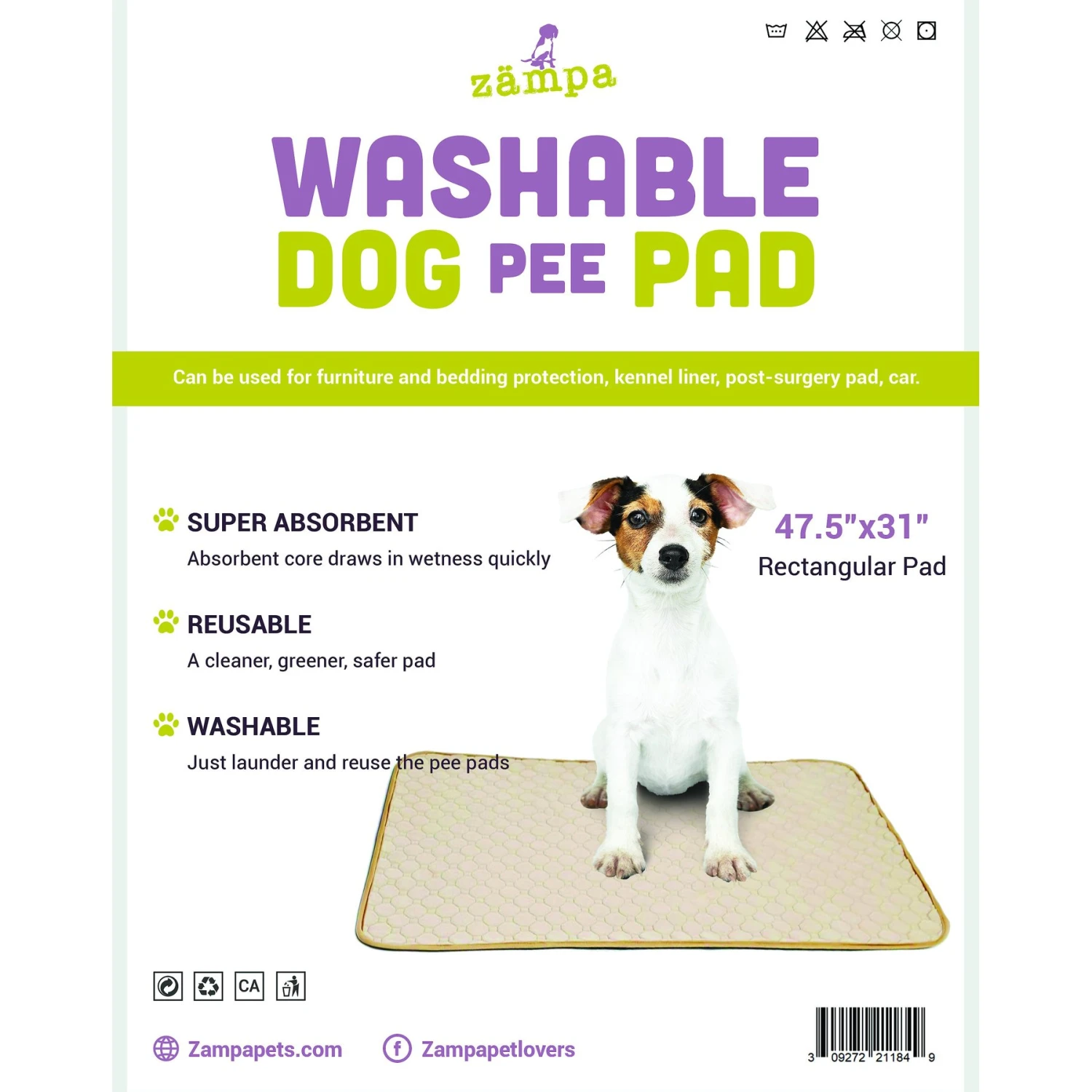 Keep your home squeaky clean with a Zampa Pets Quality Whelp Rectangular Reusable Dog Pee Pad. This washable, reusable pad features four layers of fabric for softness and absorbency. A waterproof inner layer adds extra protection. Suitable for indoor or outdoor use, they’re paw-fect for keeping your floors, furniture, and dog crate mess-free.
